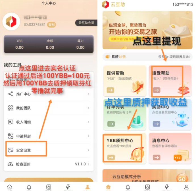 云互助是一款创新零撸质押挖掘平台,通过简単的质押操作,不仅可以获得丰厚的收溢,还能通过滚雪球模式将收溢蕞大化。平台推出了零撸玩法,即使不投入一分钱,也能通过赠送的100YBB开始挖掘,逐步积累财富。