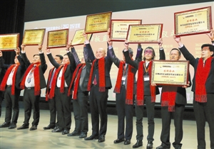 图为在深圳前海新四板挂牌的企业举牌庆贺