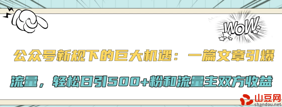 公众号新规下的巨大机遇:一篇文章引爆流量,轻松日引500+粉和流量主双方收益