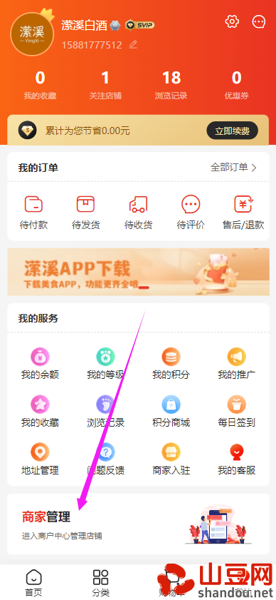 入驻成功后,我的页面会出现“商家管理”的按钮,可以随时管理商品和查看订单。
